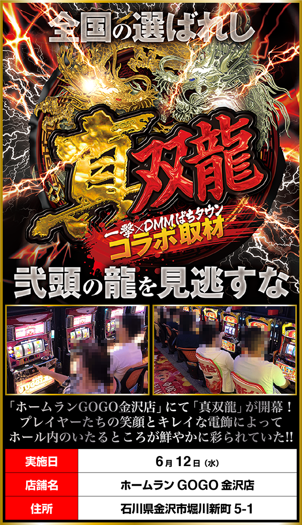 遊技面をはじめ、多くの魅力がつまっている「ホームランGOGO金沢店」。プレイヤーに愛されている理由をあらゆる面から感じられた「真双龍」となった。