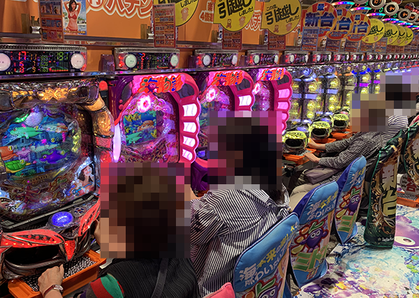 パチンコをみてみると、「CRスーパー海物語IN沖縄4 桜バージョン」や「CRA大海物語3Withアグネス・ラム」などの海物語シリーズが盛況。笑みを浮かべてハンドルを握っている姿からは、満足感を得られていることも伝わってきた。