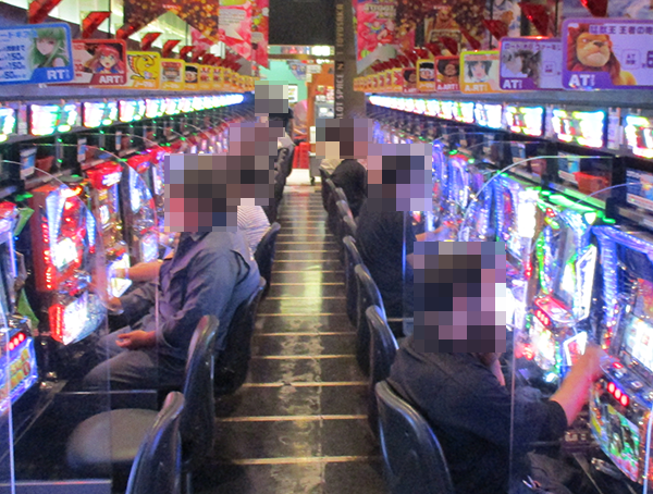 パチンコにも猛者が集合。ミドルタイプをはじめ、さまざまなスペックの機種が楽しまれていた。