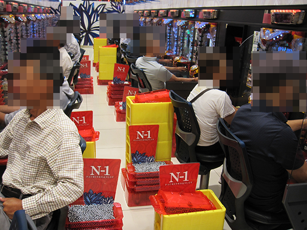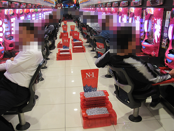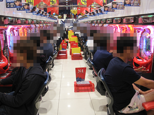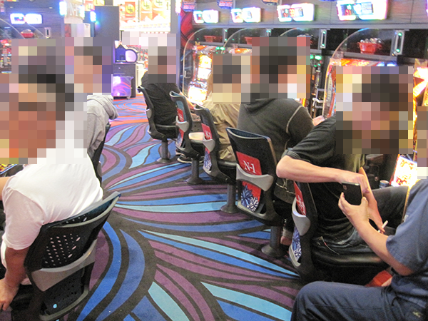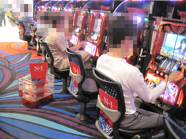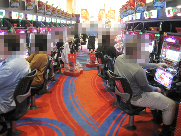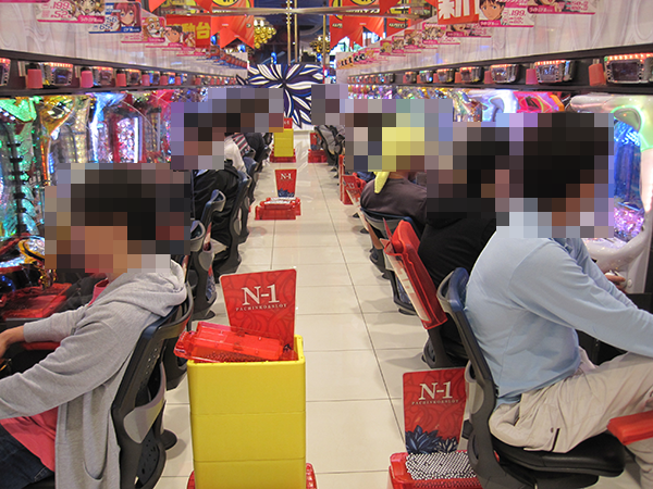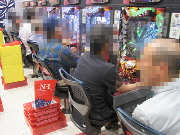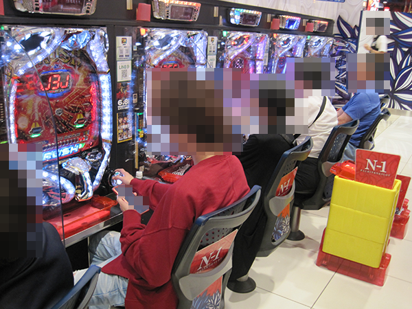 ホール全体が戦さ場のごとく活気づいていた「エヌワン西新発田店」。プレイヤーたちのうれしそうな表情からは、充実した時間を過ごしていることも伝わってきた。