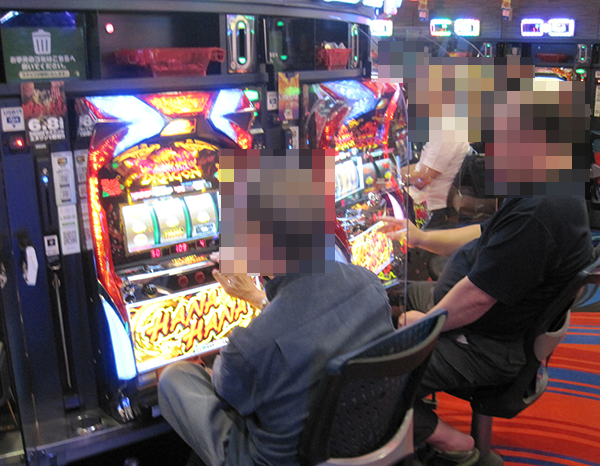 取材時には、20円パチスロの『プレミアムハナハナ‐30』と『ツインドラゴンハナハナ‐30』に広がる光景がひときわ華やか!