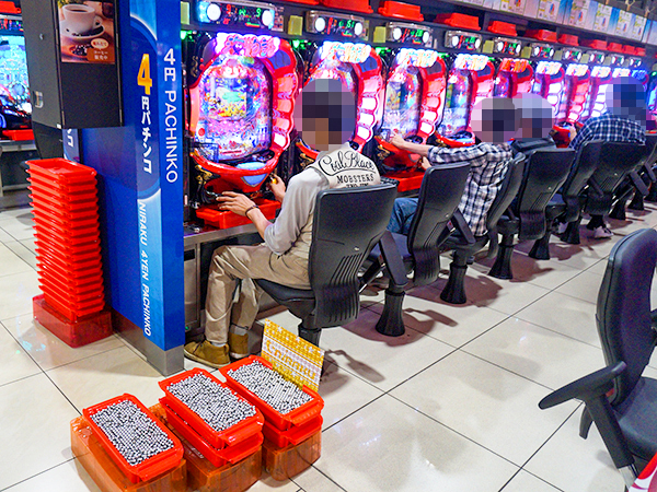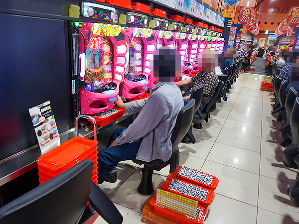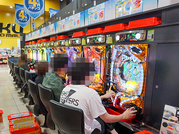 15時半ごろの4円パチンコをチェックすると「Pスーパー海物語 IN JAPAN 2」や「CRスーパー海物語IN沖縄4」といった海物語シリーズが盛況の様子。プレイヤーたちの満足気な表情が印象に残っている。