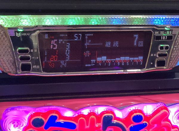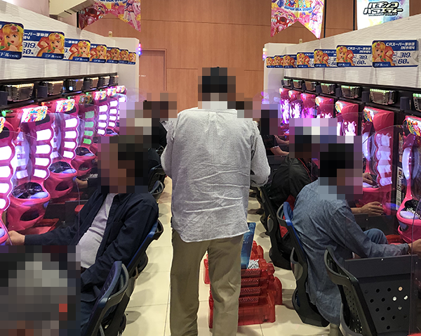 設置台数はホール内で最多の29台。確認時に埋まっていたのは5割以上であり、ほぼすべてのプレイヤーが笑顔で遊技をおこなっていたことを覚えている。