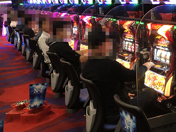 設置されているすべての台にはひじ掛けやUSBポートなど、便利な設備が備えられている。リラックスした体勢で遊技をおこなっていたり、携帯電話を充電していたりするなど、多くのプレイヤーが重宝しているようであった。