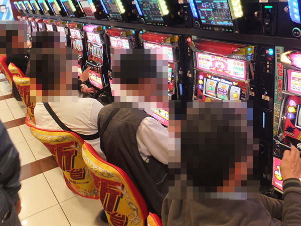 前日にリニューアルオープンをしたばかりのホール内にはたくさんのプレイヤーが集合。新しく導入された機種を含めて、さまざまな場所が活気に満ちており、鮮やかな光景が広がっていた。