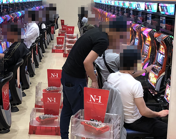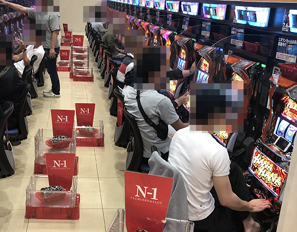 台間が広めの各シマで、プレイヤーたちはのびのびと遊技をおこなえていた様子。