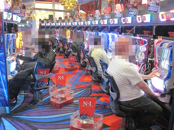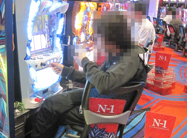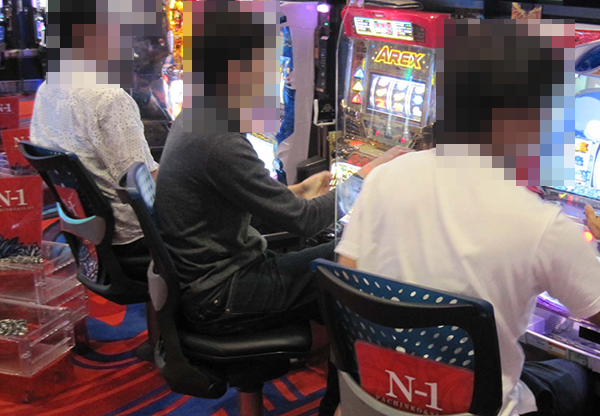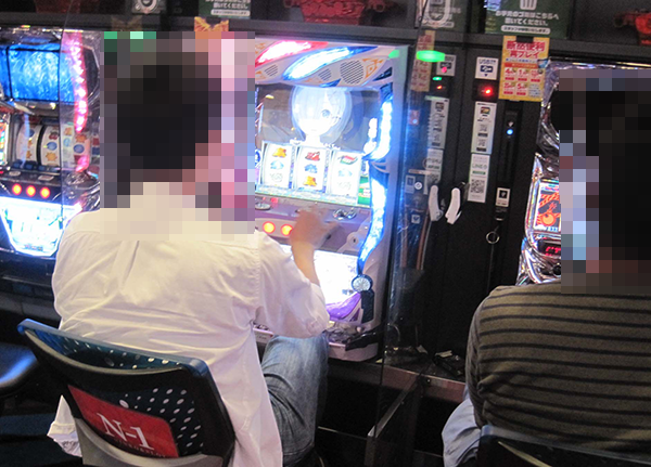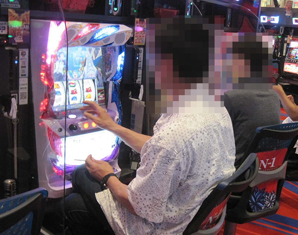 さまざまな機種が設置されているシマに置かれており、確認時に稼働していたのは5台。ひとつひとつの台の設置場所はバラバラであったが、プレイヤーたちは共通して笑みを浮かべていた。