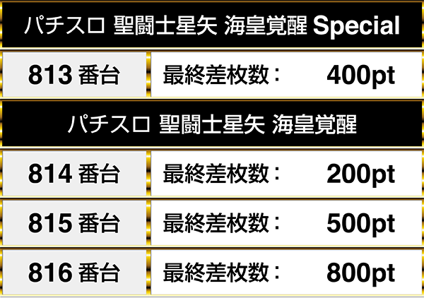 『パチスロ聖闘士星矢 海皇覚醒』と『パチスロ 聖闘士星矢 海皇覚醒Special』をあわせると、4台が並んでプラスptとなっていた。