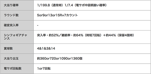 時短7回転+残り保留4個で大当りを狙うシンフォギアチャンスが大量出玉獲得のカギを握る。