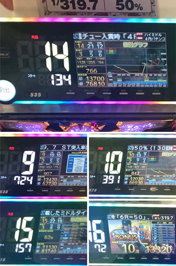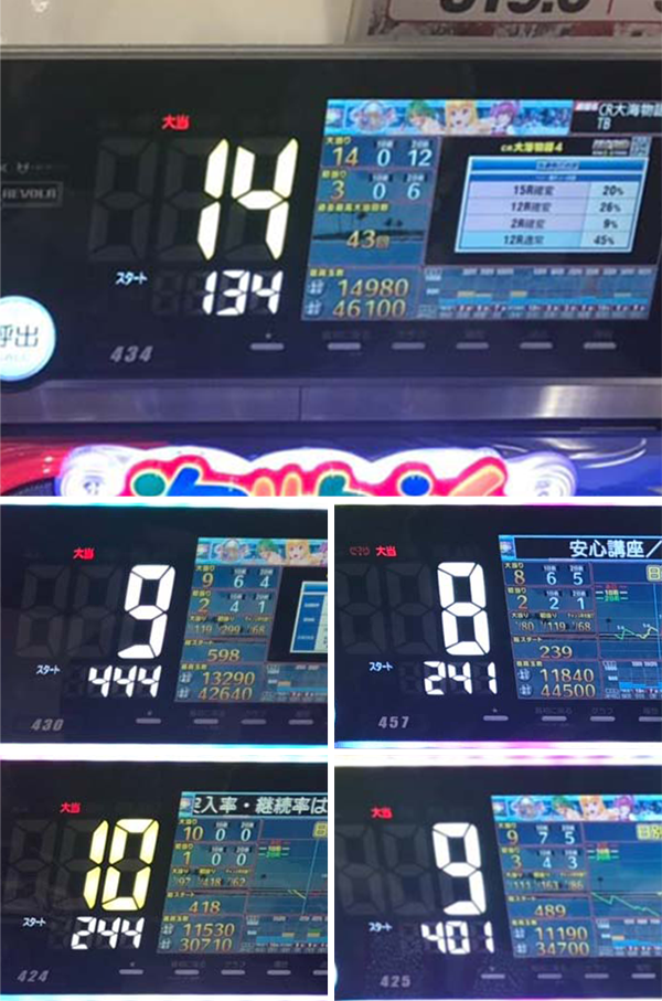 『ぱちんこCR真・北斗無双』と『CR大海物語4』は5台以上の獲得出玉が10000個を超えていた。