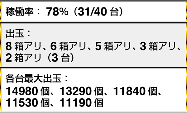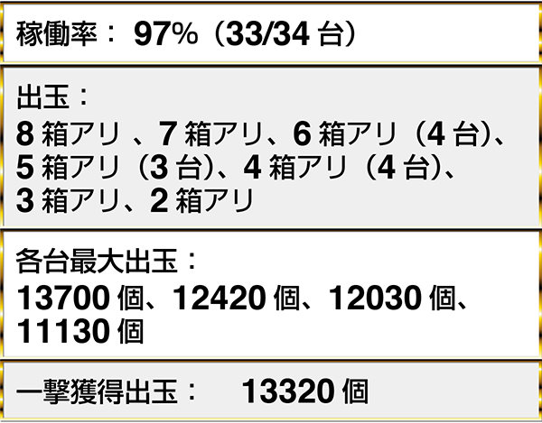 ・『ぱちんこCR真・北斗無双』の15名以上が出玉2箱over