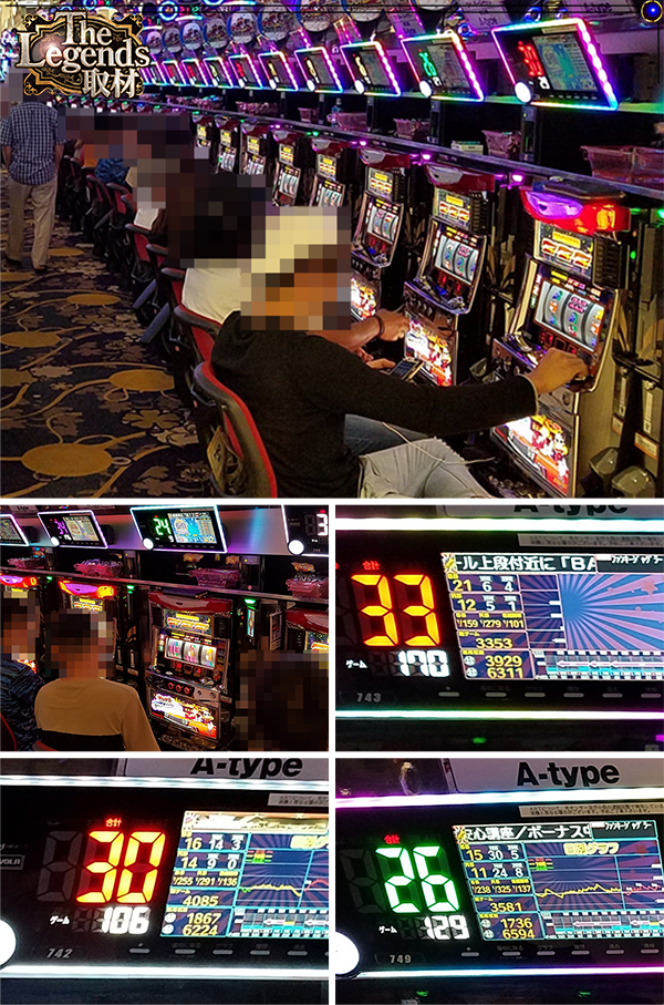 パチスロコーナーをみてみると、さまざまな機種で活躍をしているプレイヤーを目撃。鮮やかな光景が広がっており、どのシマも活気に満ちあふれていた。