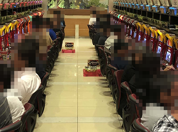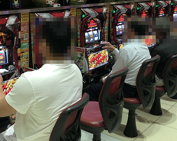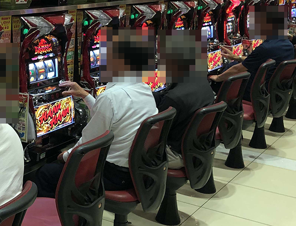 パチスロコーナーを進んでいくと、満面の笑みを浮かべながら遊技をおこなう姿がみられ、各所が楽しげな雰囲気に包まれていた。
