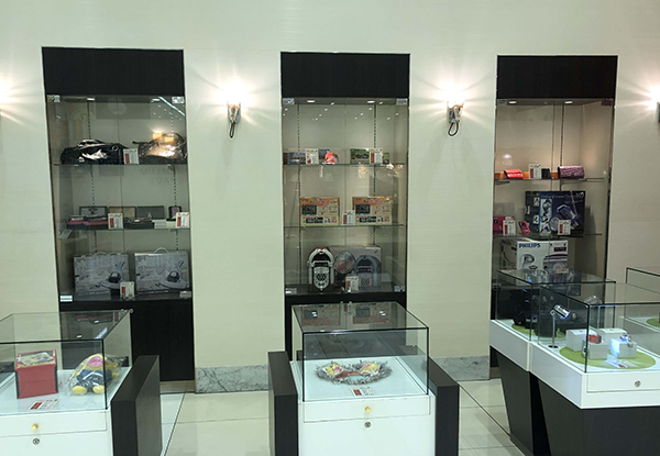 おもちゃやバッグなどがガラスケースに陳列されている賞品コーナーも印象的。みためにもわかりやすく、賞品選びもスムーズにおこなえそうだ。