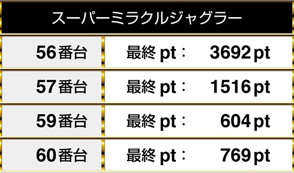 最終的には5台中4台がプラスptとなり、なかには3000ptオーバーもあった。