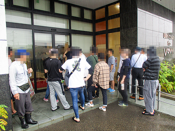 開店前は悪天候にもかかわらず、たくさんのプレイヤーが集まっていた。