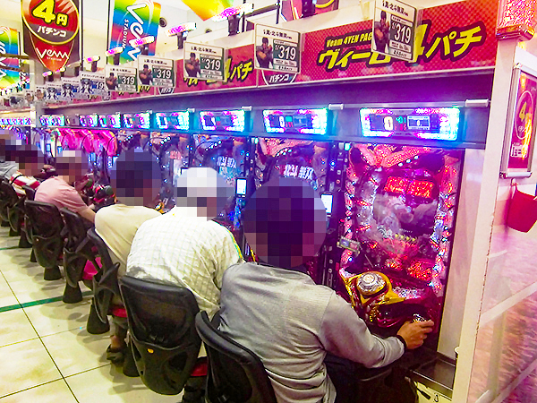 14時過ぎの4円パチンコを見てみると「ぱちんこCR真・北斗無双」や「CRAトキオプレミアム」で好調なプレイヤーを目撃。各人の嬉しそうな表情が印象に残っている。