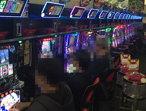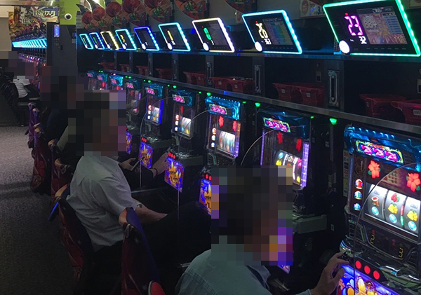 『沖ドキ!』と『スーパーミラクルジャグラー』、『GI優駿倶楽部』と『SLOTギルティクラウン』など、設置されている台数や場所はさまざま。共通しているのは、レバーを叩くプレイヤーたちの明るい表情!