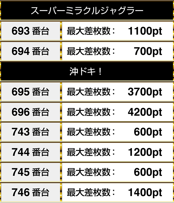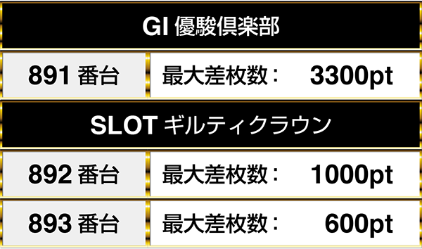 3台が並んでプラスptを記録している場所も存在。