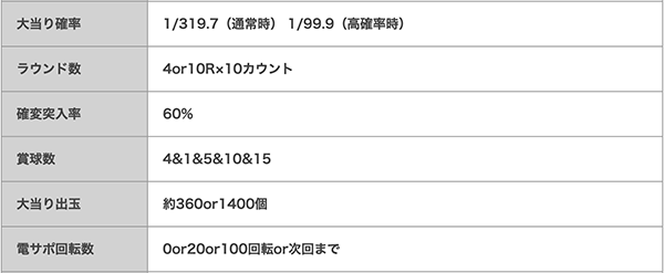 大当りと小当りで大量出玉獲得を目指すゲーム性。
