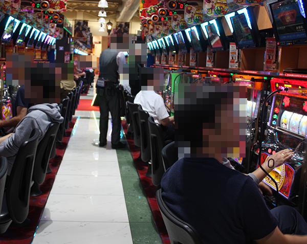 ホール内を歩いていると、パチスロコーナーから活気を感じた。定番機種が集められたシマから機種構成がバラエティに富んでいる場所にいたるまで、楽しそうなプレイヤーの姿があり、パチスロの魅力を味わえていたイメージだ。