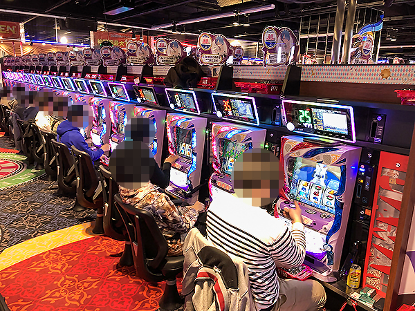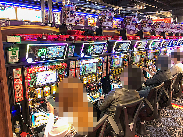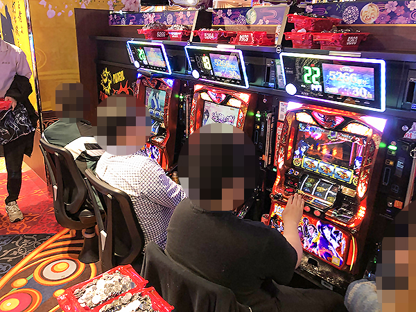 14時過ぎの1000円/47枚パチスロをチェックすると「ミリオンゴッド-神々の凱旋-」や「バジリスク~甲賀忍法帖~絆」が活況の様子。好調なプレイヤーが複数見受けられ、時折見せる嬉しそうな表情が印象に残っている。