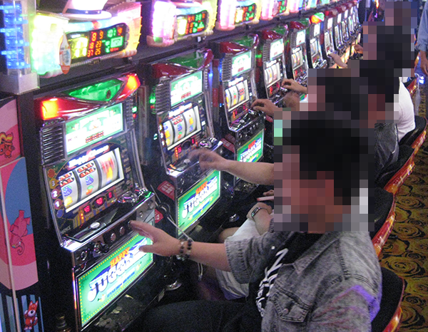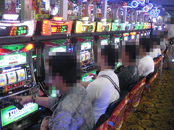 さまざまなスペックの機種にプレイヤーが集まっている状況で、とくに人気であったのはジャグラーシリーズ。なかでも、活気づいていたのが「ハッピージャグラーVⅡ」であった。