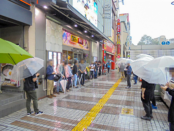開店前からおよそ100人のプレイヤーが集合。スタッフによって素早く誘導され、店内は早くもにぎやかな雰囲気に包まれていた。