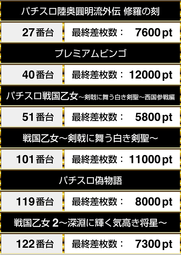 ほかにも、『パチスロ偽物語』や『パチスロ陸奥圓明流外伝 修羅の刻』などが盛況。