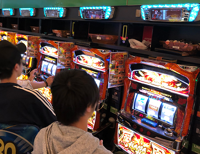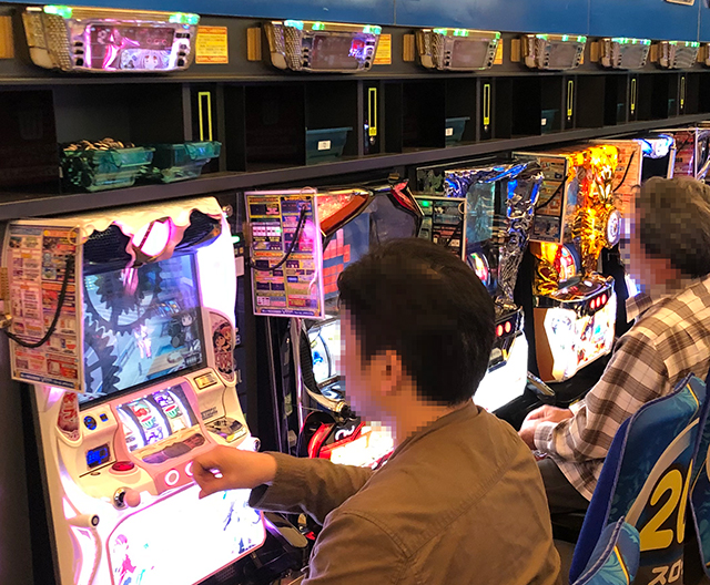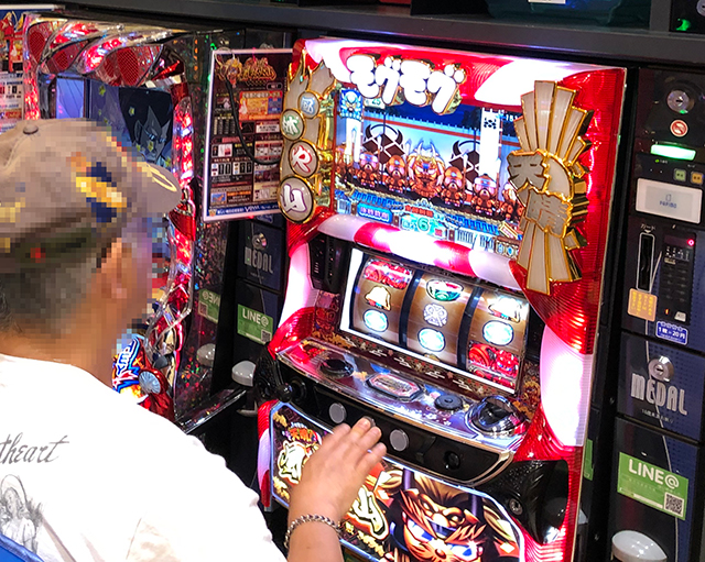 年配のスロッターが演出を