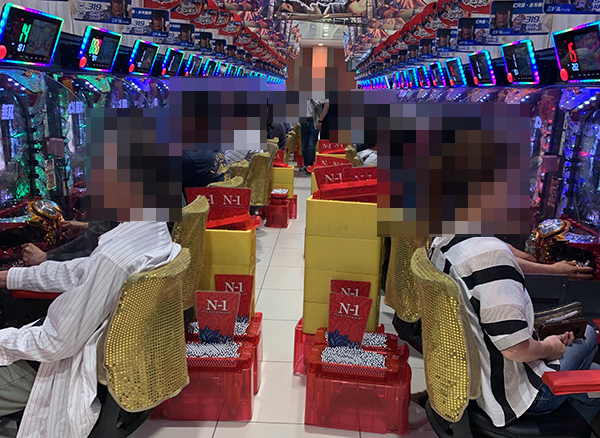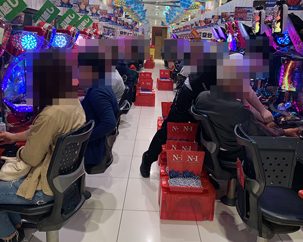 パチンコとパチスロの両方が活況となっていた「エヌワンいわき店」。ホール全体が笑顔に囲まれていた。
