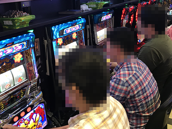 どのプレイヤーも機種の魅力を味わうといった様子でイキイキとレバーを叩き、おなじように人気を集めているほかの機種以上にステキな笑みが広がっていた。
