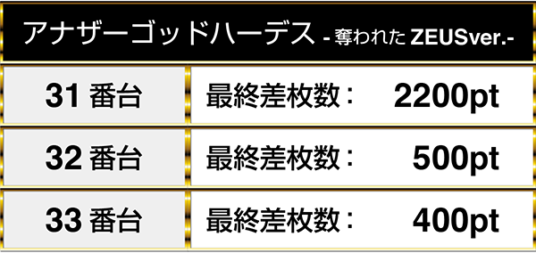 『アナザーゴッドハーデス-奪われたZEUSver.-』には、3台が固まってプラスptとなる場所もあった。