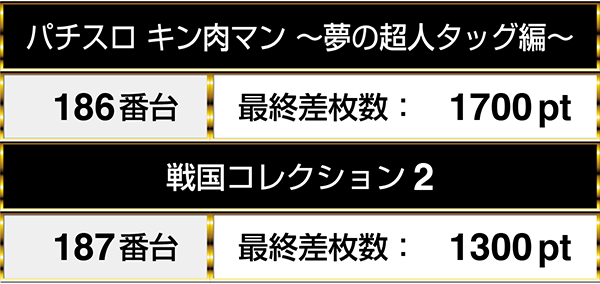 『押忍!番長3』と『パチスロ蒼天の拳2』にプラスptが並んでいた。