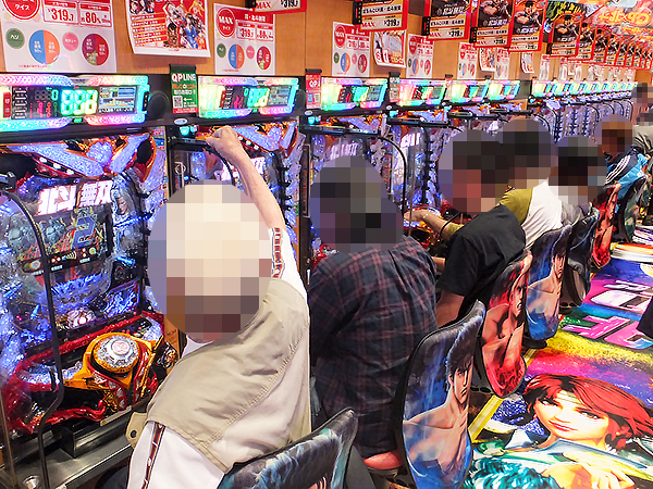 開店直後は4円パチンコの「ぱちんこCR真・北斗無双」を中心にプレイヤーが集まっていた。