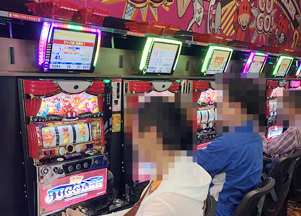 パチスロをみると、ジャグラーシリーズの盛り上がりが大きい。なかでも、プレイヤーの笑顔が目立っていたのは「マイジャグラーⅣ」だ。