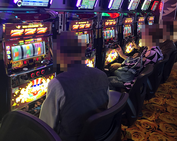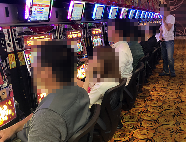ホール内を歩いていると、ジャグラーシリーズが設置されているコーナーから明るい雰囲気を感じた。さまざまなシリーズ機が向かい合わせに設置されている場所のいたるところで、イキイキとレバーを叩く姿を目にしている。