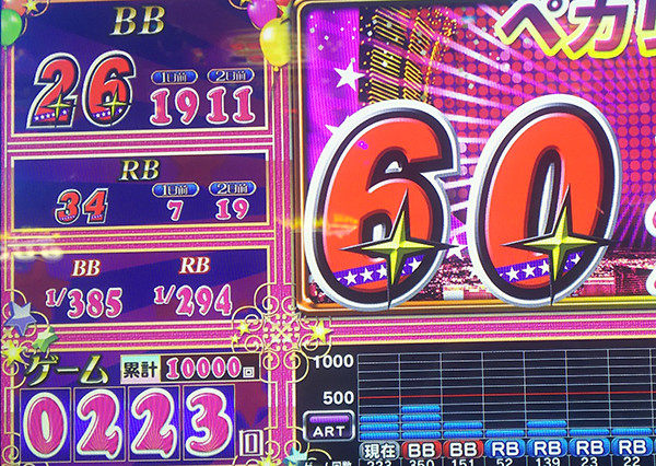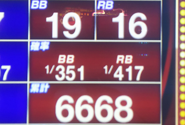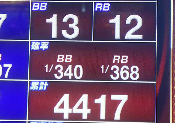 レバーを叩くスピードはそこまで速くないものの、9時オープンということもあり、12時頃には2200Gを通過。仲のよいプレイヤーが一緒に遊技をおこなってくれるなど、楽しげな雰囲気のなかでチャレンジを進めている様子であった。