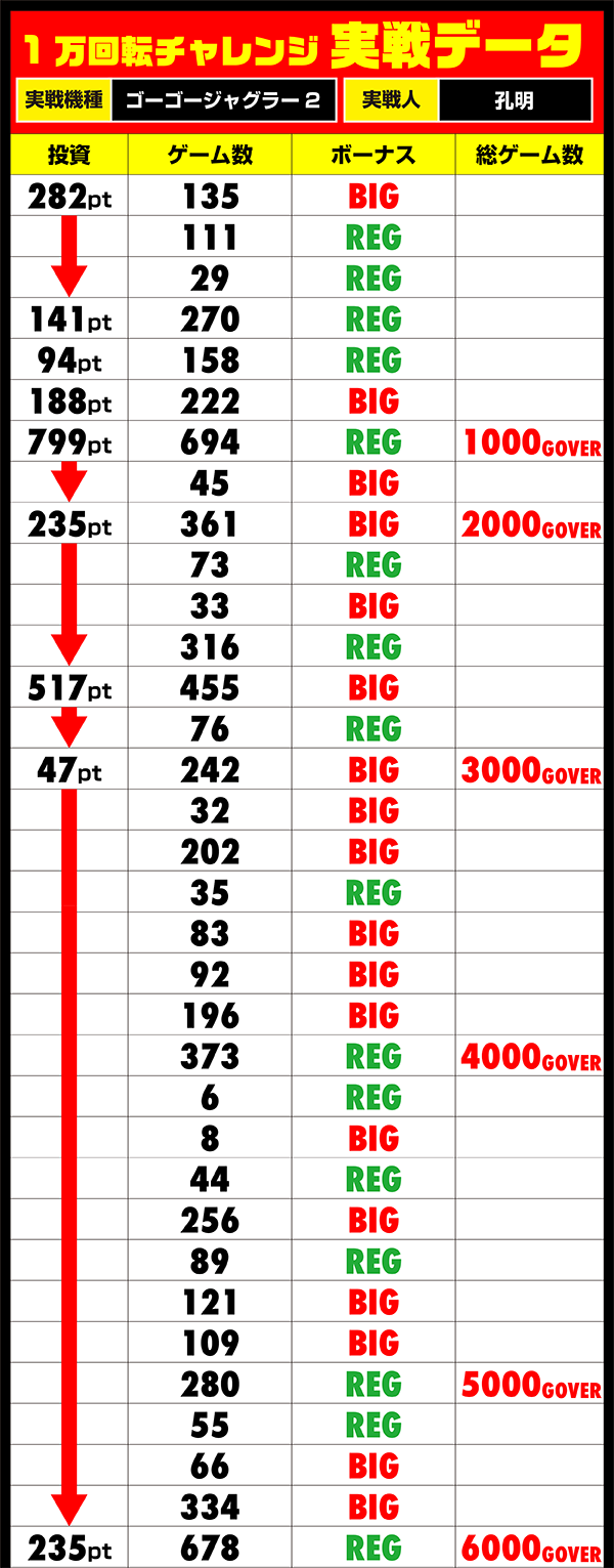 しかし、出玉面ではまわりのプレイヤーのように活躍ができず、チャレンジを終えた孔明はどこか悔しそうな様子。成功と勝利を同時に掴むことの難しさを痛感させられる1日となったようだ。