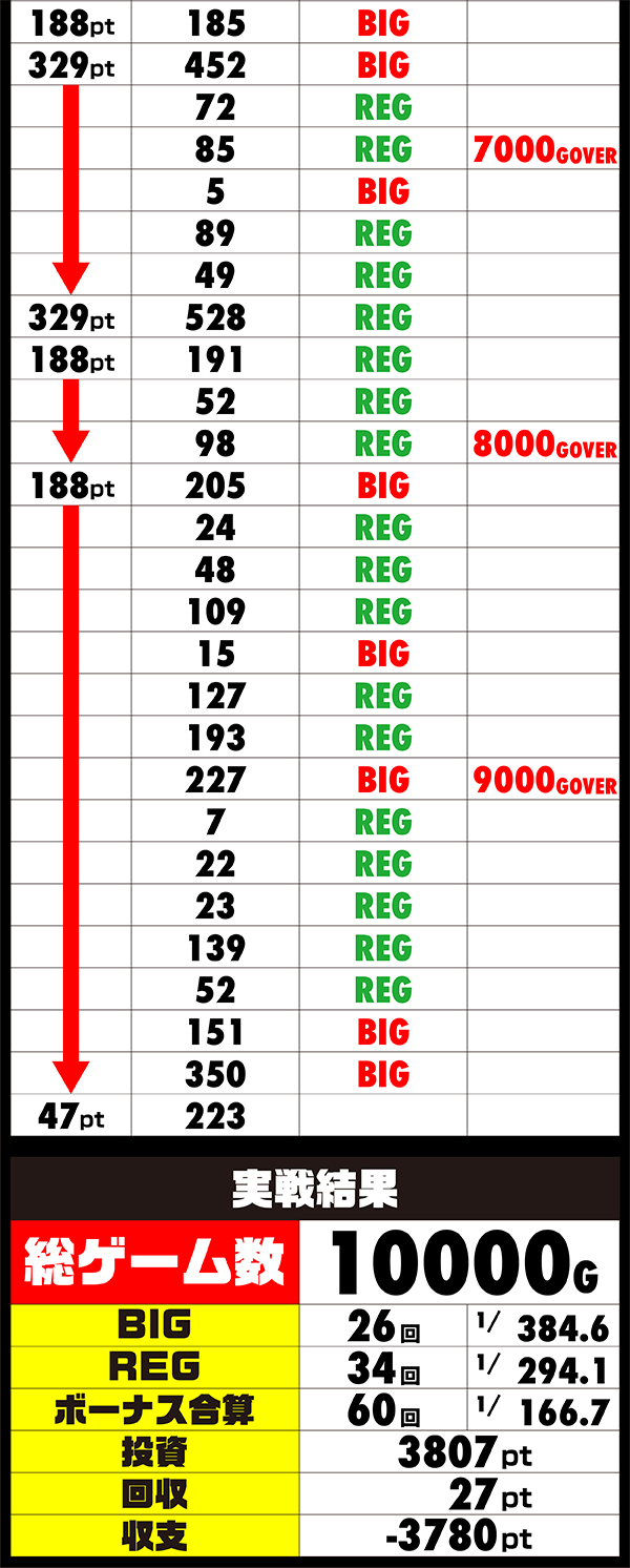 1万回転達成はみえてきただけに、後半戦はほかのプレイヤーたちのようにボーナス獲得のほうも頑張ろう!