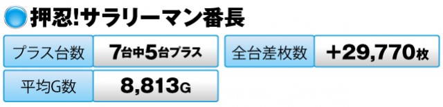 7台中5台がプラスで、全台差枚数が+29,770枚。