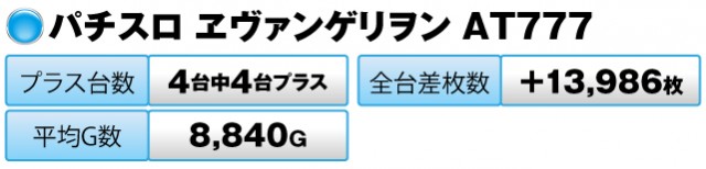 いずれも4台すべてがプラスで、全台差枚数がそれぞれ+13,986枚、+10,267枚、+9,428枚を記録している。