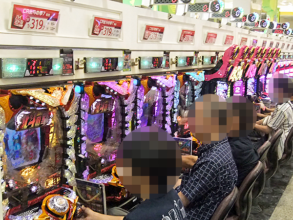 16時ごろの100円/89玉パチンコでは「ぱちんこCR真・北斗無双」や「ぱちんこCR北斗の拳7 転生」、「CRぱちんこ AKB48-3 誇りの丘」が盛況で、プレイヤーたちの満足気な表情が印象に残っている。
