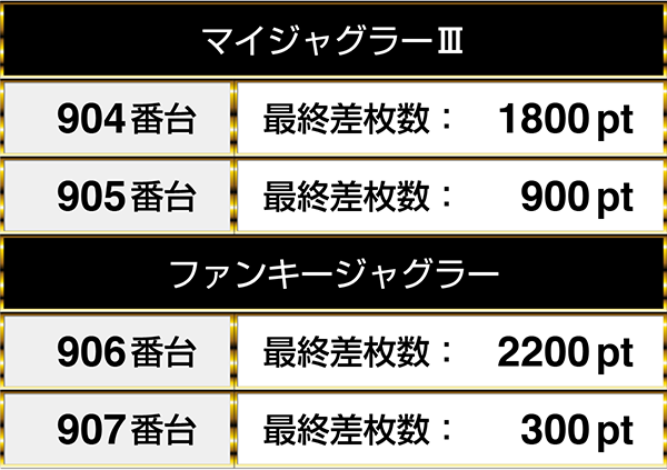 『マイジャグラーⅢ』と『ファンキージャグラー』が並んでプラスptを記録!