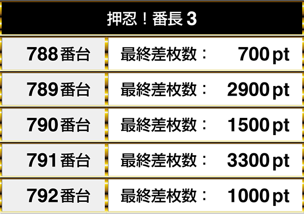 閉店時のデータでは、3台以上が並んでプラスptを記録している場所が2箇所もあった。