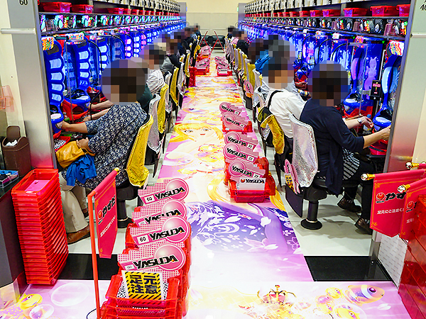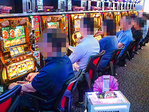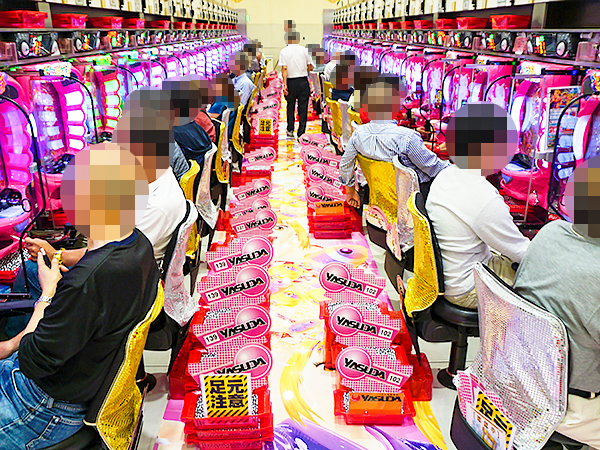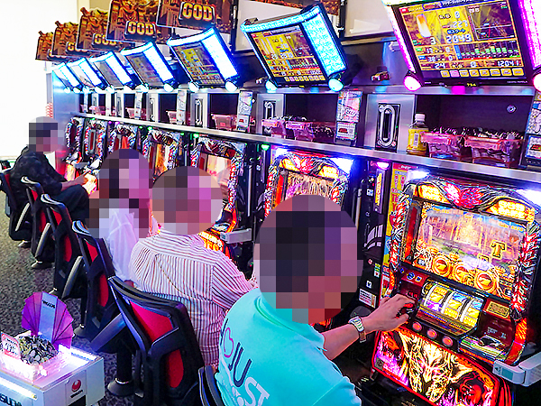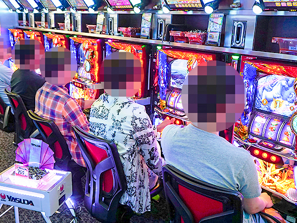 5円・2円パチスロに目を移すと、楽しそうにレバーを叩くプレイヤーの姿が至る所で見られた。