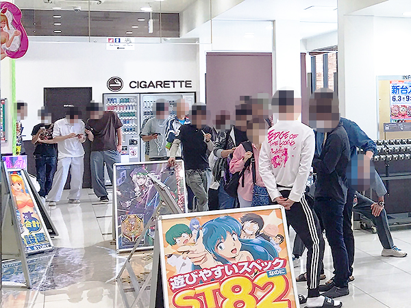 取材当日は新台入替がおこなわれ、14時に抽選を開催。新台での遊技を心待ちにする多くのプレイヤーが列を形成していた。