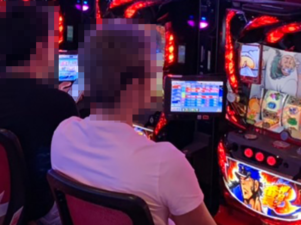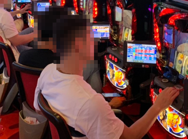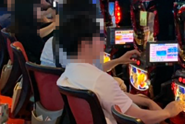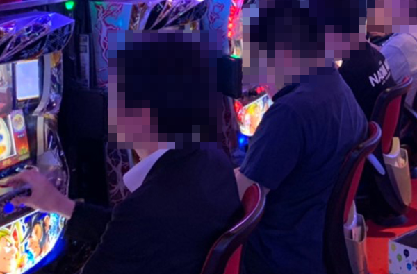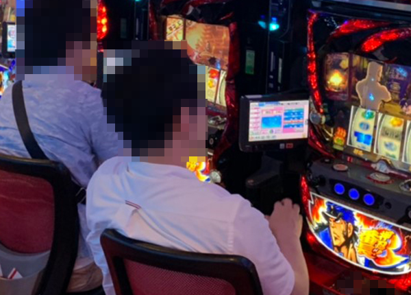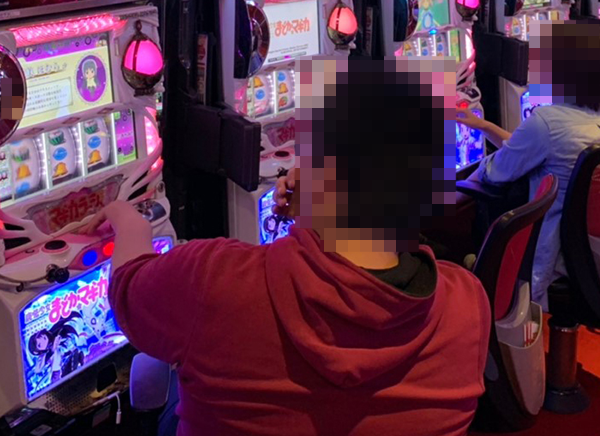 大にぎわいとなっているパチスロコーナーのさまざまな場所に、鮮やかな光景が広がっていた。