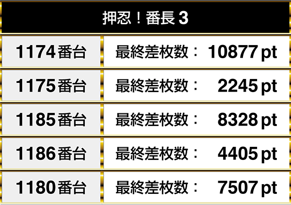 閉店時には並んでプラスptとなる場所が2箇所あり、そのうちの1台は10000ptオーバーを記録。