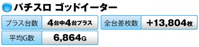 4台すべてがプラスで全台差枚数は+13,804枚をマークした。